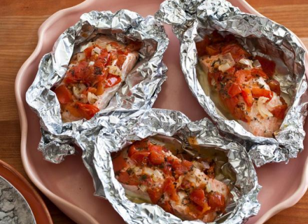 Лосось с томатами, запеченный в фольге